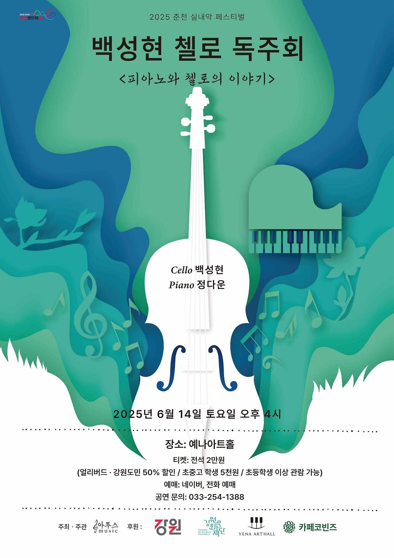 [강원특별자치도] 춘천 실내악 페스티벌, 백성현 첼로 독주회: 피아노와 첼로의 이야기